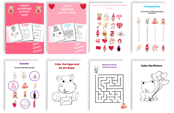 6 Journal Covers 2 Puppy & Kitten Valentine Trader Cards Sheets 6 Journal Paper Pages Puppy and Kitten Heart Shaped ephemera Puppy and Kitten Tags 6 Lined Journal Paper Pages Journal Pocket