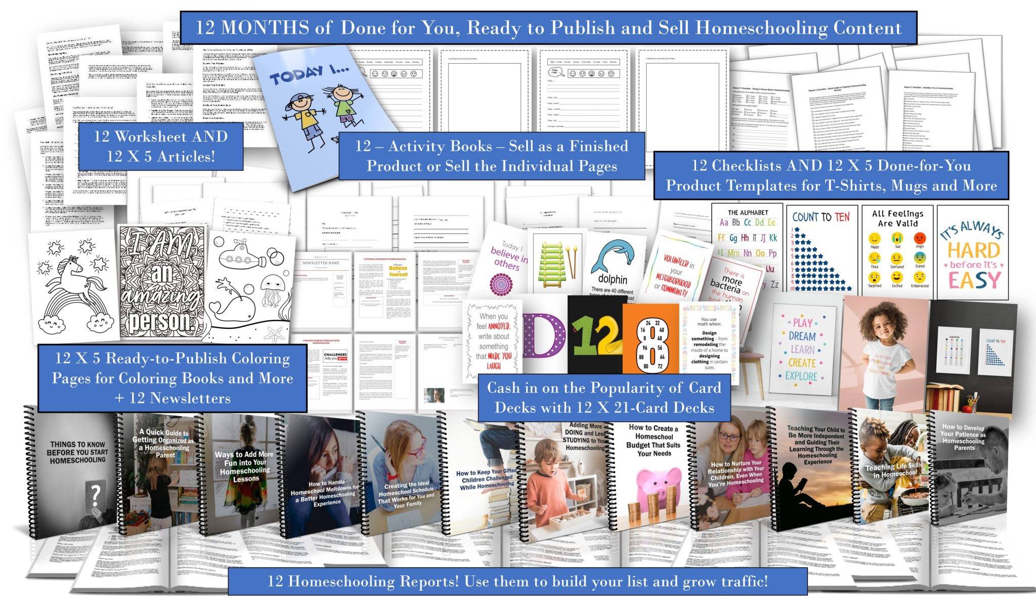The homeschooling / educational niche is a multi-billion dollar industry and this is your chance to cash in with content to grow your list, build a relationship with your audience and to have instant products for sale.