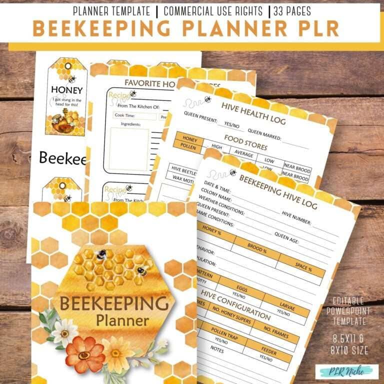 The Beekeeping Planner PLR comes with 33 Pages. It is 100% Unique and made by Michelle of PLR Niche. The template is in two sizes, 8.5 x 11 & 8 x 10, Editable PowerPoint Files, PDF File, Font Files, with Commercial Use Rights. You will also get 5 Beekeeping Article Tips in the planner, written by a Master Beekeeper.