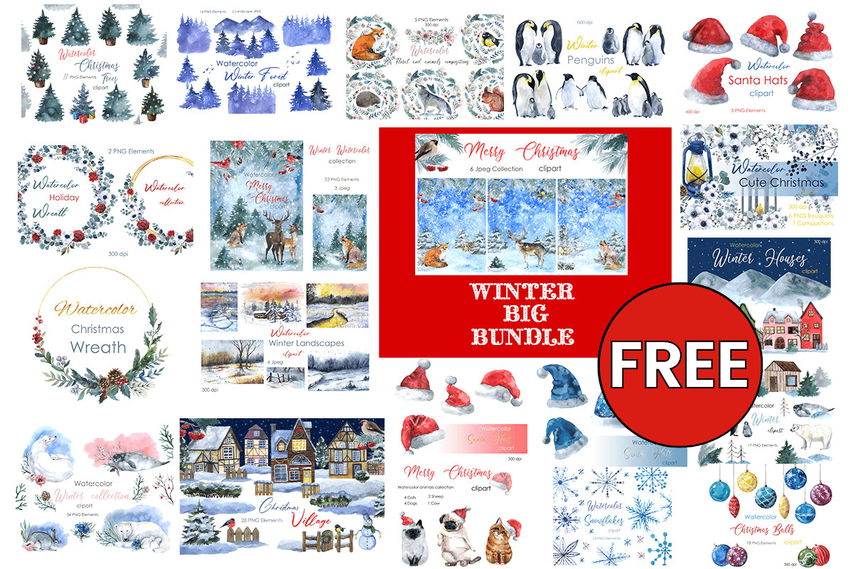 Watercolor Winter Christmas Bundle