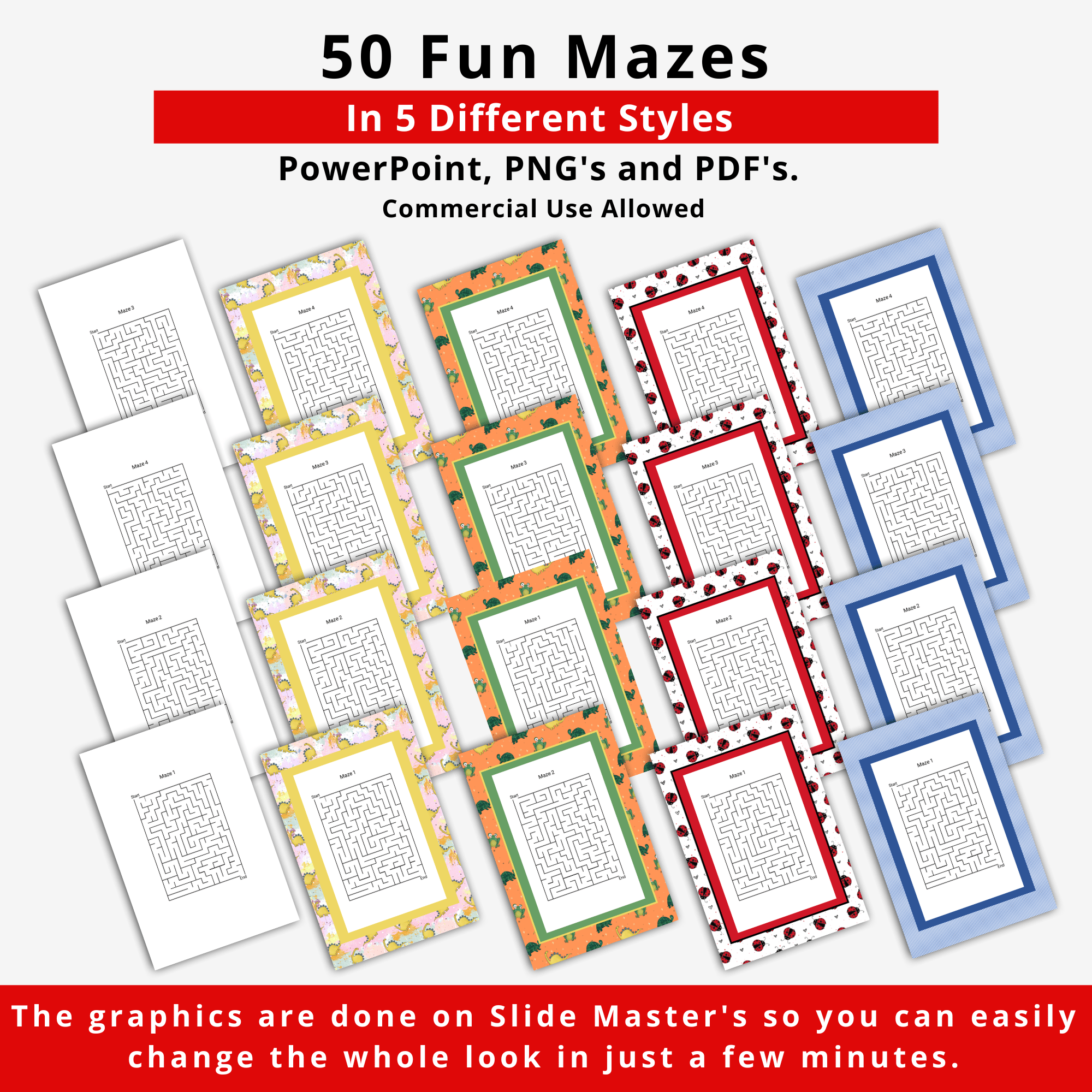 You get PowerPoint files , PNG’s and PDF’s. The graphics are done on Slide Master’s so you can easily change the whole look in just a few minutes. Use the PNG’s to add to your digital activity books. The PDF’s are great to list in your Etsy shop for print at home printables.