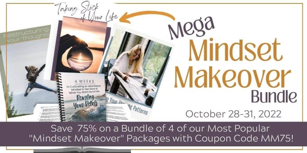 The Mega Mindset Makeover Bundle Includes FOUR complete 4-part ‘Mindset’ ecourses + some awesome extras: