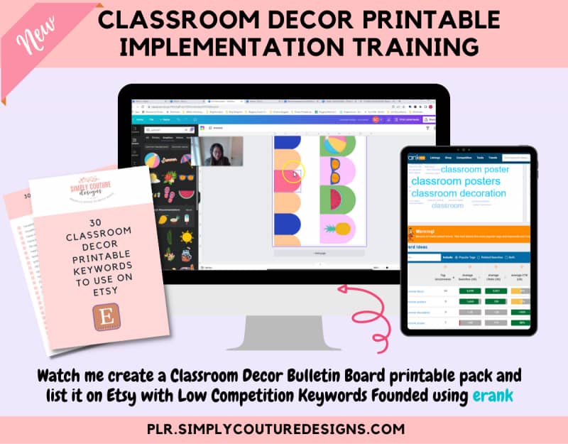 In this training, Carmen will show you how to create a Classroom Décor Bulletin Board printable pack and list it on Etsy with Low Competition keywords found using erank.
