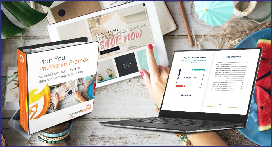 Most business owners and entrepreneurs don’t plan their promotions in advance, which means they’re losing out on all sorts of potential revenue. Not to mention all the stress involved! They take a look at the calendar, see a holiday coming up in a couple days, and decide to run a sale. Or they see that revenue has dipped, so they figure they should do something about it. But business owners who plan all their promos well ahead of time are able to earn consistent revenue, with fewer slumps and bigger boosts throughout the year. And our brand new, exclusive white label course walks people through exactly how to plan out a full year of promos. Check out what’s included in the course on the sales page.