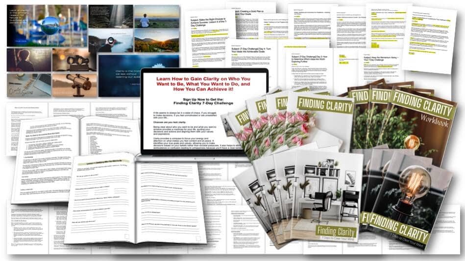 - 7 In-Depth “Finding Clarity” Blog Posts/Articles (.docx) – These articles expand upon the email series. They dive deeper into each daily lesson and include a “Finding Clarity Exercise” to help their readers work through the process