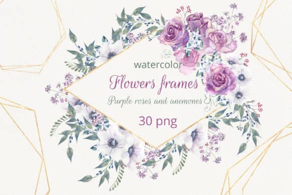 30 Geometric Watercolor Flowers Frames