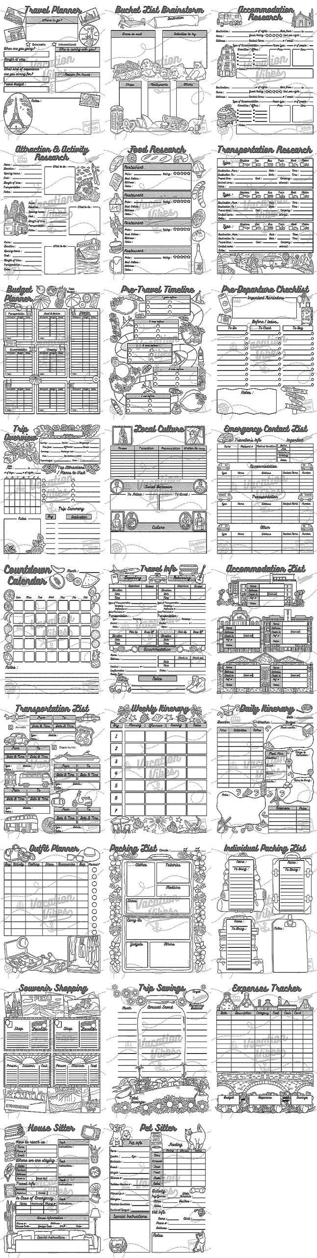 This Bundle Includes The Following Beautifully Illustrated Travel and Vacations Themed Coloring Pages: