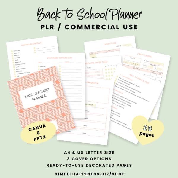 This Planner is perfect for parents planning their child’s return to school and would make a great lead magnet or product for mom bloggers.