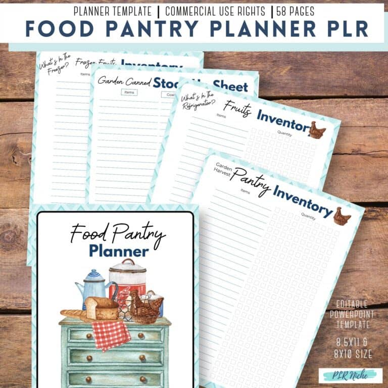 The Food Pantry Planner PLR Template comes with 58 Pages. It is 100% Unique and made by Michelle of PLR Niche. The template is in two sizes, 8.5 x 11 & 8 x 10, Editable PowerPoint Files, PDF File, Font Files, and Commercial Use Rights. Regular $35, Save 50% Priced at only $17.50. The sale starts on July 11th and ends on July 18th at Midnight.