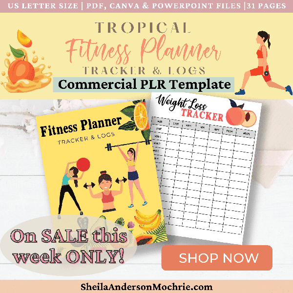 Tropical Fitness Planner, Tracker & Logs Commercial PLR Printable Template