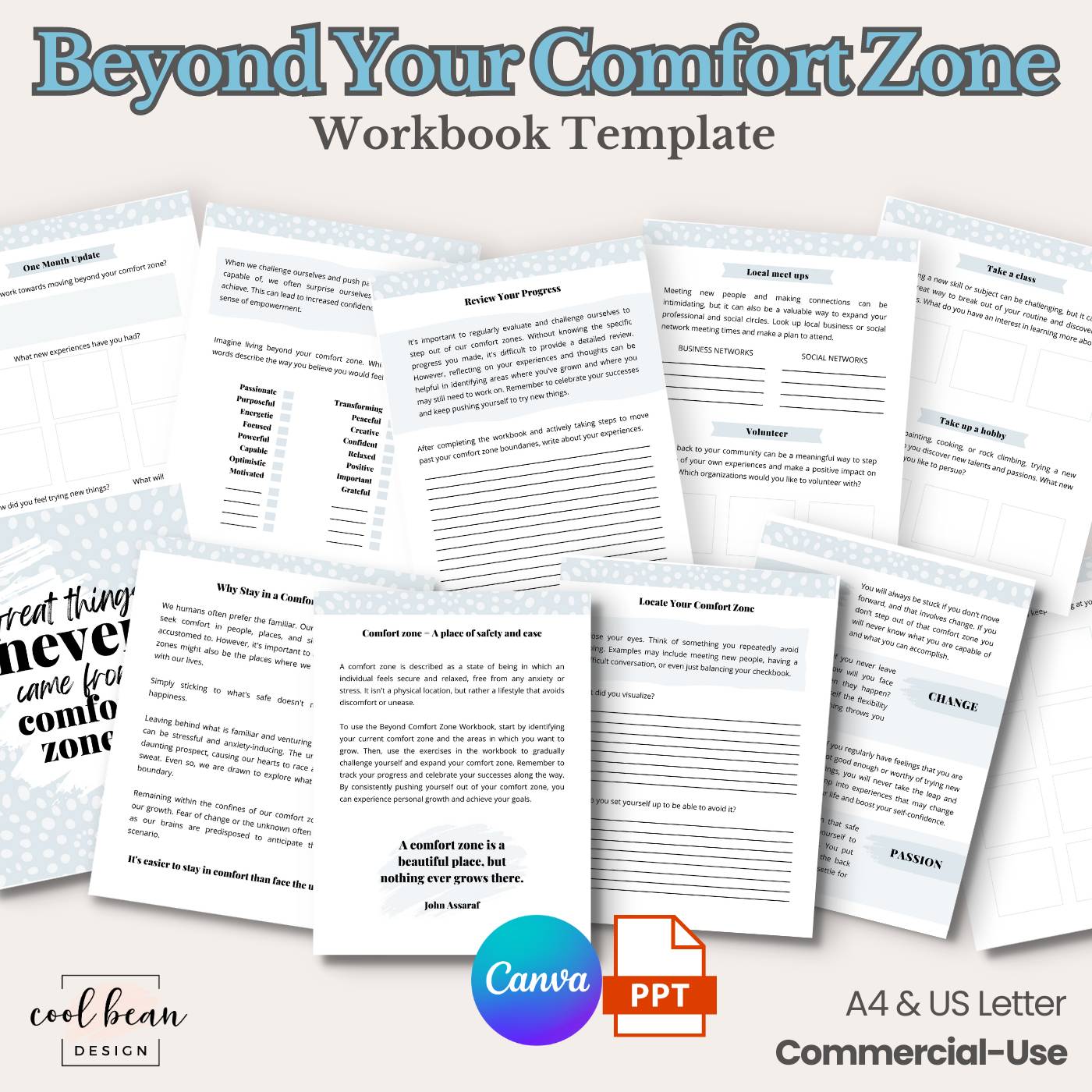 The Beyond Your Comfort Zone Workbook Template is a great tool for coaches, bloggers, and content creators who want to help others step out of their comfort zones and achieve their goals. This template is designed to guide your clients or audience through a series of exercises that will help them identify their comfort zones, understand why they stay there, and help them move beyond them.