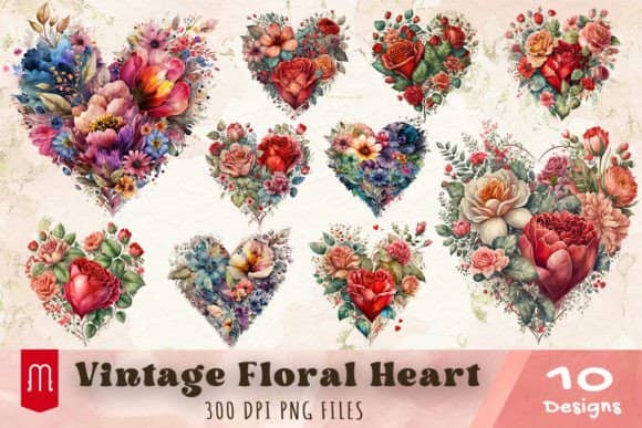 Beautiful Vintage Floral Heart Bundle