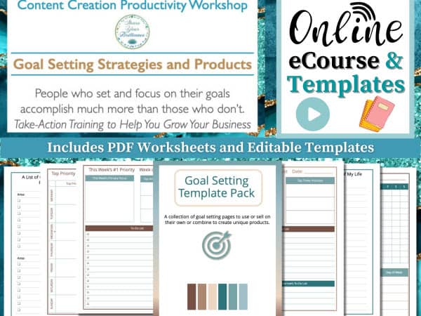 Discover goal setting strategies that you can use personally and that you can use in products you create to sell or use in your own workshops. During the training you’ll also have access to a demonstration, where you’ll learn new ways to customize and re-color the template pack. Being that commercial use rights are included, you’ll be able to transform the templates into countless new products.