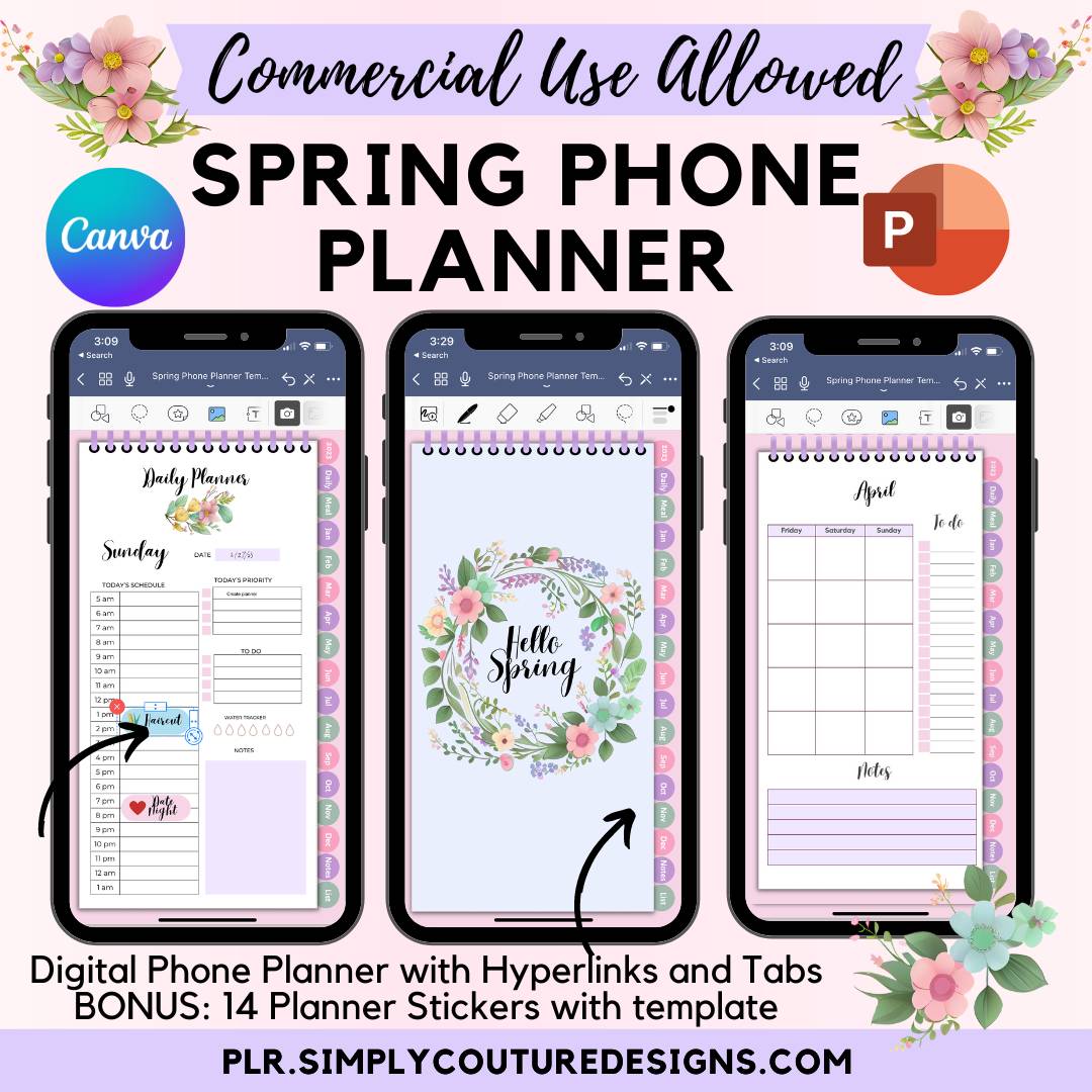 Digital Spring Phone Planner PLR Template