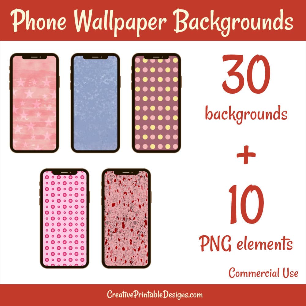 30 Phone Wallpaper Backgrounds + 10 PNG Elements