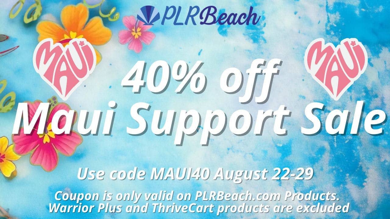 Coupon: MAUI40 saves 40% off all PLR Beach products now through August 29th at midnight CST. The coupon can be used up to 10 times.