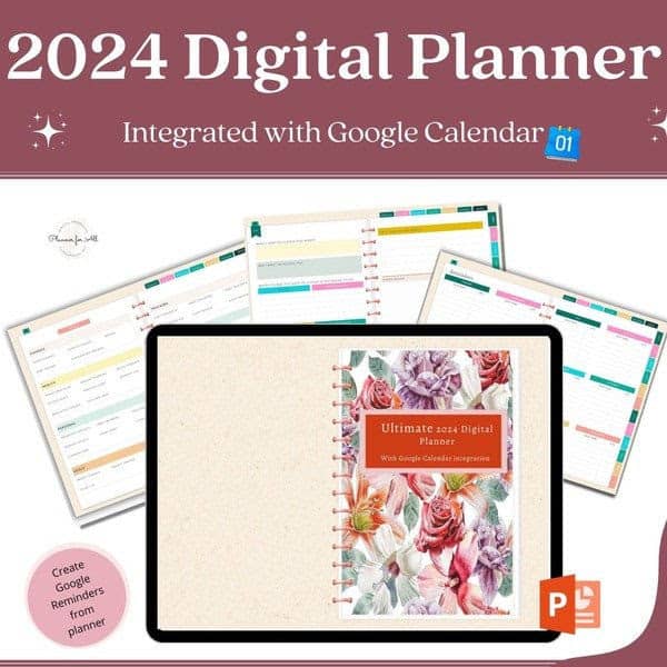 With this planner, your customers get the benefit of typical digital planner with monthly/weekly/daily planning, with lots of planning pages like financial planner, wellness planner, habit trackers & much more. And best of all, your customers can directly add important events to their Google calendar right from the planner itself.