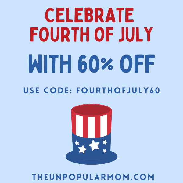 Marcy at the UnpopularMom.com is having a fourth of July sale! Everything in the store is 60% off, except PBA!