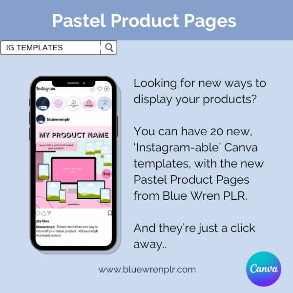 The Pastel Product Pages are designed to make product launches easy. Designing a product is one thing, but having quality graphics to display your new product to best advantage makes life easier (and launching products quicker). These 20 mint and pink pastel-themed templates create a variety of coordinated looks for your product (and don’t we all love a consistent look to our product graphics?)…… The templates are square, and Instagram-ready. What could be easier?