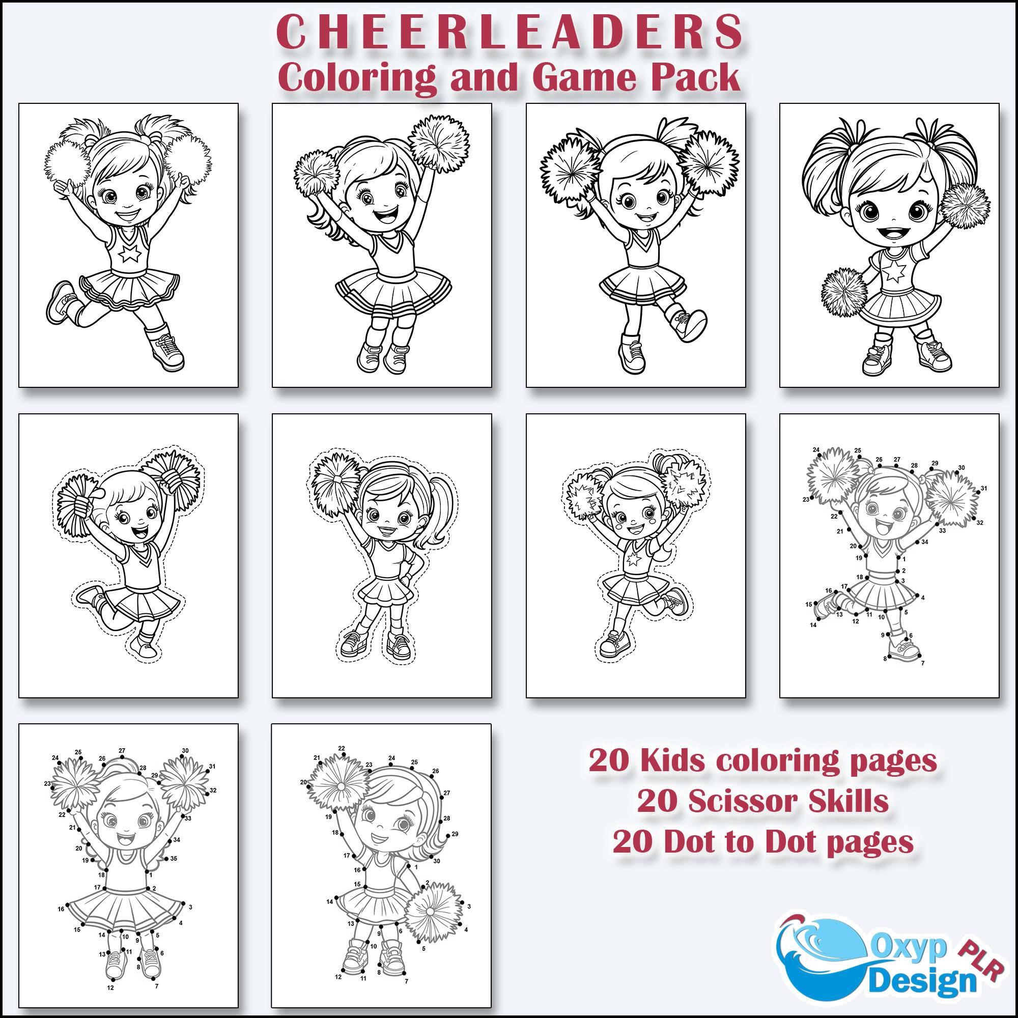 The Cheerleaders Coloring and Game pack includes: * 20 Kids coloring pages * 20 Scissors skills pages * 20 Dot to Dot pages that you can mix and match at your best convenience to create your own printables