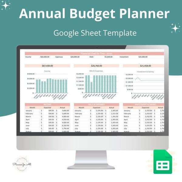 Make budgeting easy with this annual budget planner Google Sheets Template. This budgeting template will help you to plan and track your budget for the entire year.