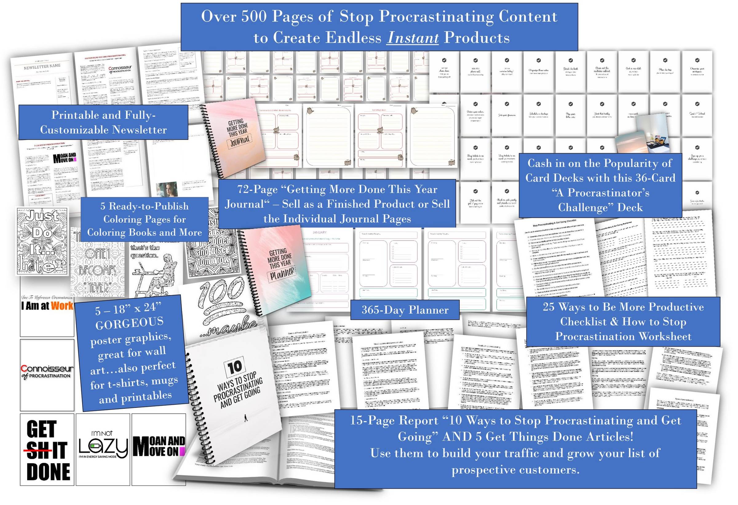 Easy-to-Promote Instant Product Package: Stop the Procrastination and Get Things Done This Year Printables and Product Templates Value Pack with Private Label Commercial-Use Rights