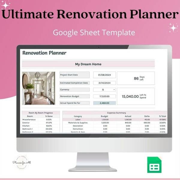From scheduling, tracking expenses, and brainstorming ideas, this spreadsheet provides a guided framework for every stage of the renovation.