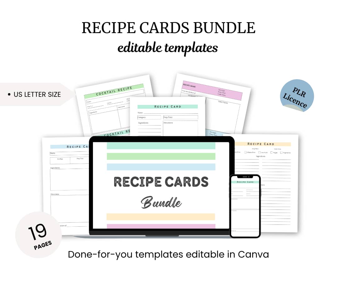 This Recipe Cards Bundle has a minimalist theme. Use them as a blank slate to create a range of themed products for each holiday.